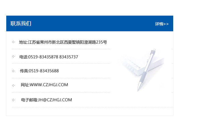 傳真:0519-83435688    郵編:213135    網(wǎng)址:WWW.czjhgj_com.jihuadz.com    電子郵箱:JH@czjhgj_com.jihuadz.com